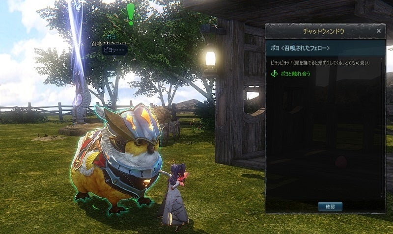 また、その後孵化に成功したフェローは30日の間フェロー牧場内で好きなときに召喚できるようになり、召喚したフェローと触れ合ったり更にはデイリークエストを通じてお礼を貰ったりすることができます!