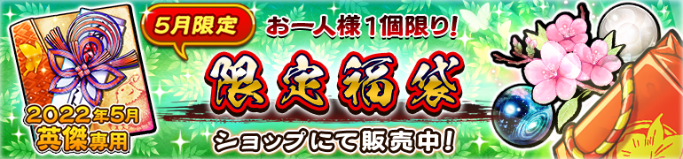 当月に開催されるイベント「【夢想の果てに】特効! 英傑 縁結び」で使用できる「【御朱印付き】5月・英傑結糸(10回)」を1個と、キャラクターの強化に必要なアイテムがまとめて手に入るお得なセットです。