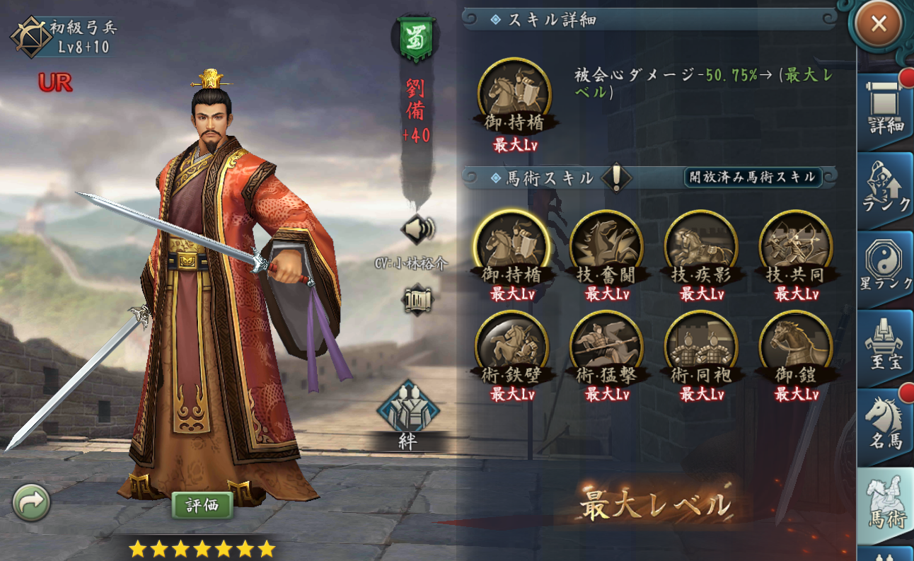 「馬術」は武将の基礎ステータスを底上げする新機能になります。名馬を装着することで「馬術」のスキル効果は発動され、「馬術」の巻物を使用することでレベルアップが可能になります。