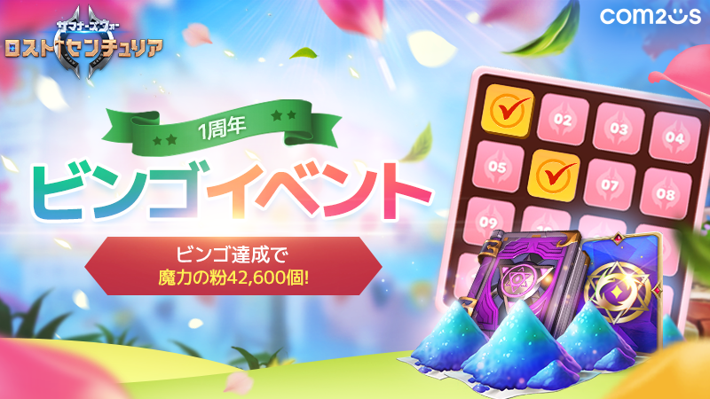 ビンゴカードの番号をすべてチェックすると、計42,600個の魔力の粉を獲得できますので、ぜひチャレンジしてください。