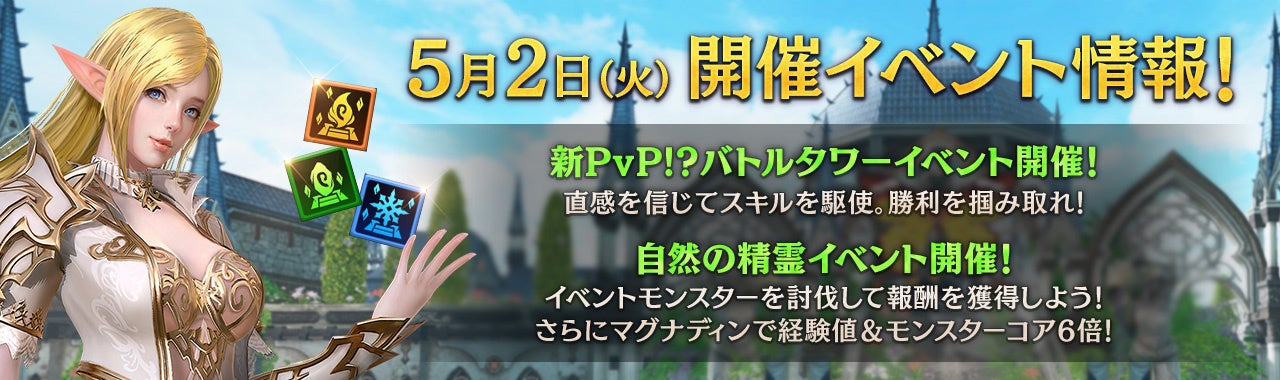 ネットマーブルは、スマートフォン向け超巨大マルチバトルRPG 『リネージュ2 レボリューション (Lineage2 Revolution)』において、5月2日(月)に、豪華報酬満載の「リネレボウィークイベント」の開催やGWを記念した新商品を追加するゲームのアップデートを実施いたしました。