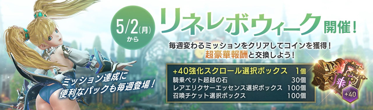 ◆超豪華報酬を獲得できる4週間の「リネレボウィークイベント」開催!GWも『リネレボ』を遊びつくそう!