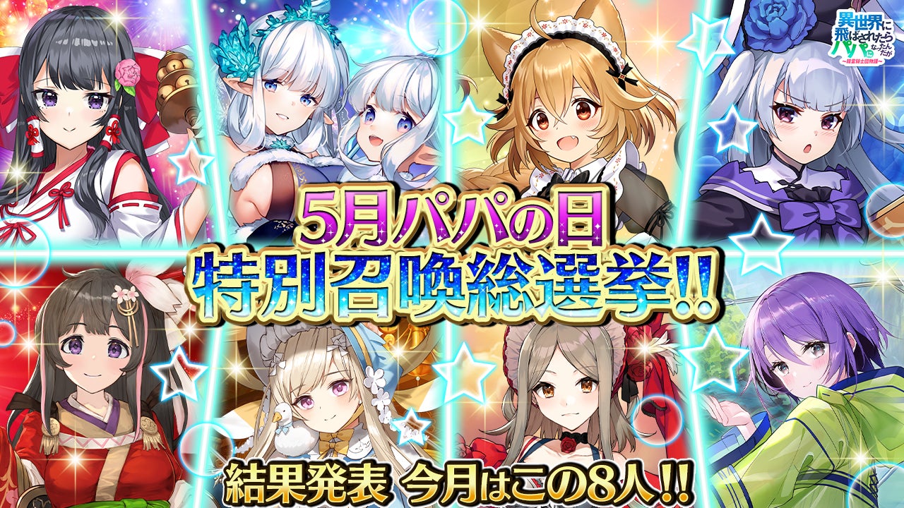 5月の厳選8キャラUR召喚イベントは、 先日ユーザーの皆様にご投票いただいた「特別召喚総選挙」で上位8名になったURキャラを集めました。
