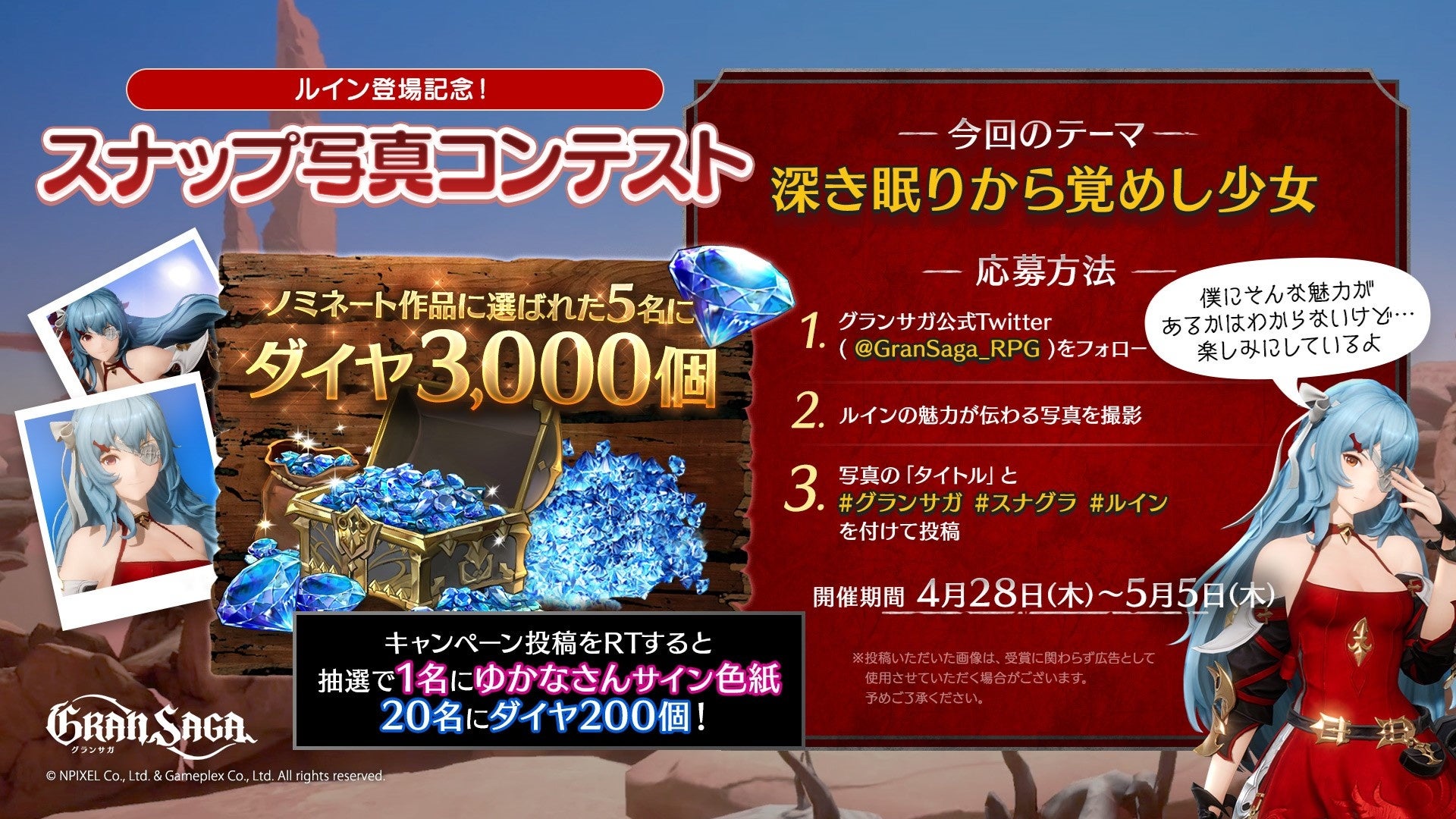 新プレイアブルキャラクター『ルイン』の実装を記念して実施されたTwitterイベント、『グランサガスナップ写真コンテスト』のノミネート5作品を紹介いたします!