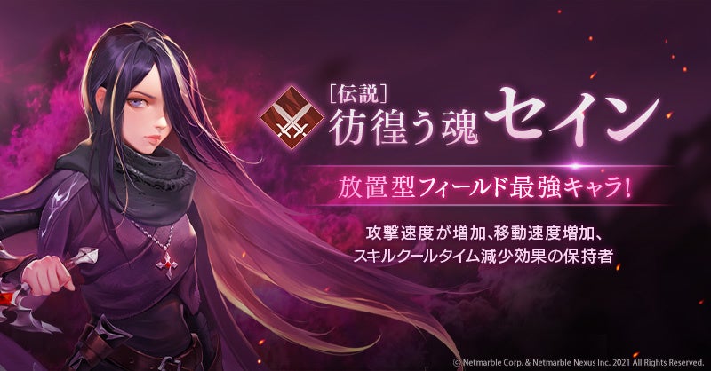 『セブンナイツ2』の世界に新たな英雄として伝説「彷徨う魂 セイン(CV.大森 舞)」が参戦いたします。
