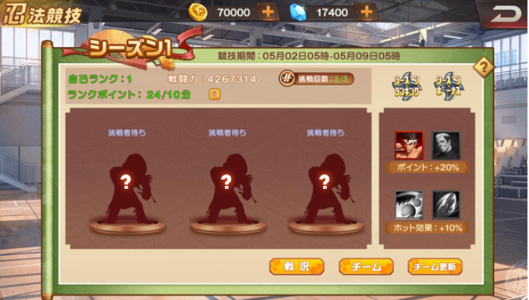 デイリーランク:毎日の忍者へのダメージによってボーナスが獲得できます。