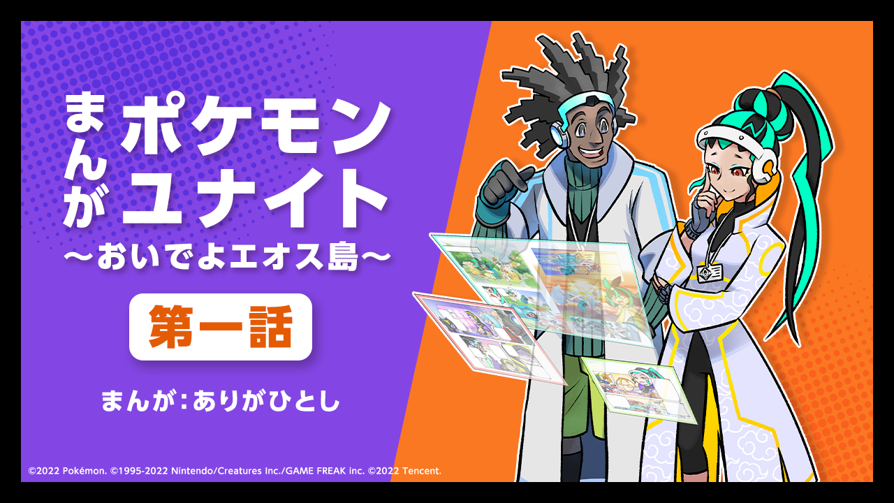 『ポケモンユナイト』の世界観を紹介する「まんがポケモンユナイト~おいでよエオス島~」の第一話・第二話を公開しました。