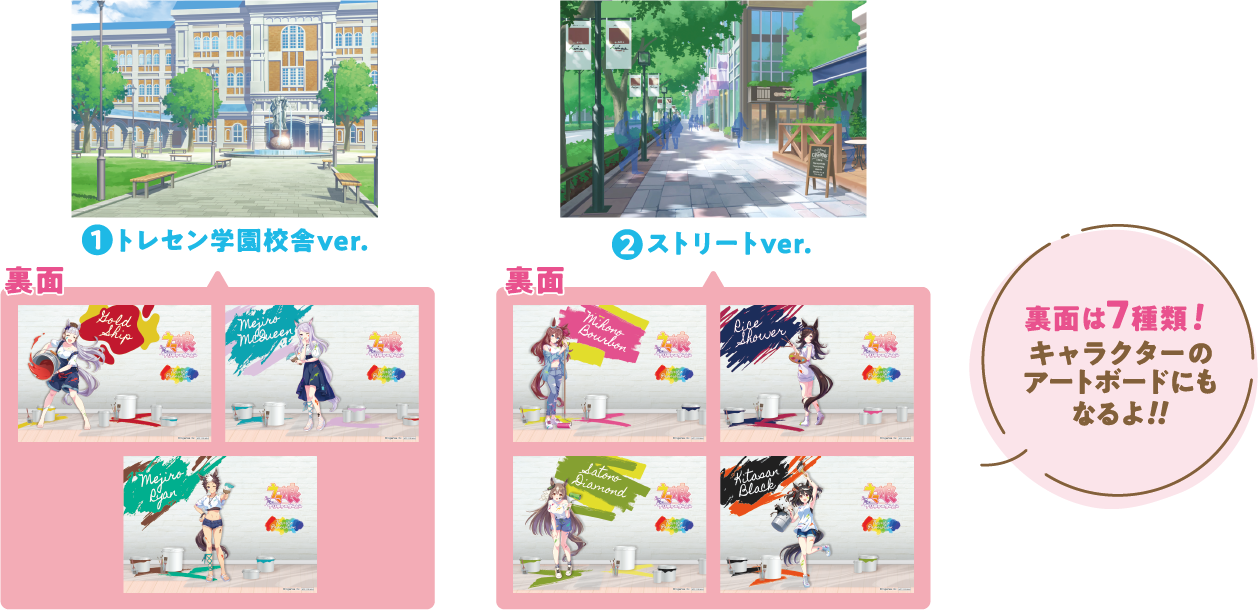 | 2022年5月27日(金)登場予定 1. ウマ娘 プリティーダービー スタンド付きビッグアクリルプレート~ペインタースタイル~ 種類:全7種 サイズ:約15cm 上段左から:ゴールドシップ、メジロマックイーン、ミホノブルボン 下段左から:メジロライアン、ライスシャワー、サトノダイヤモンド、キタサンブラック ナムコ限定の描き下ろしイラストを使用した、大きめのアクリルプレートです。 |