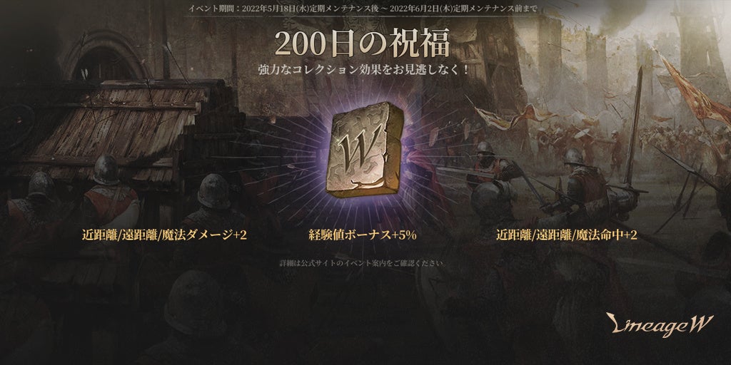 「リネージュW」サービス開始200日間を記念して、多様な恩恵を得られるイベントが開催されます。