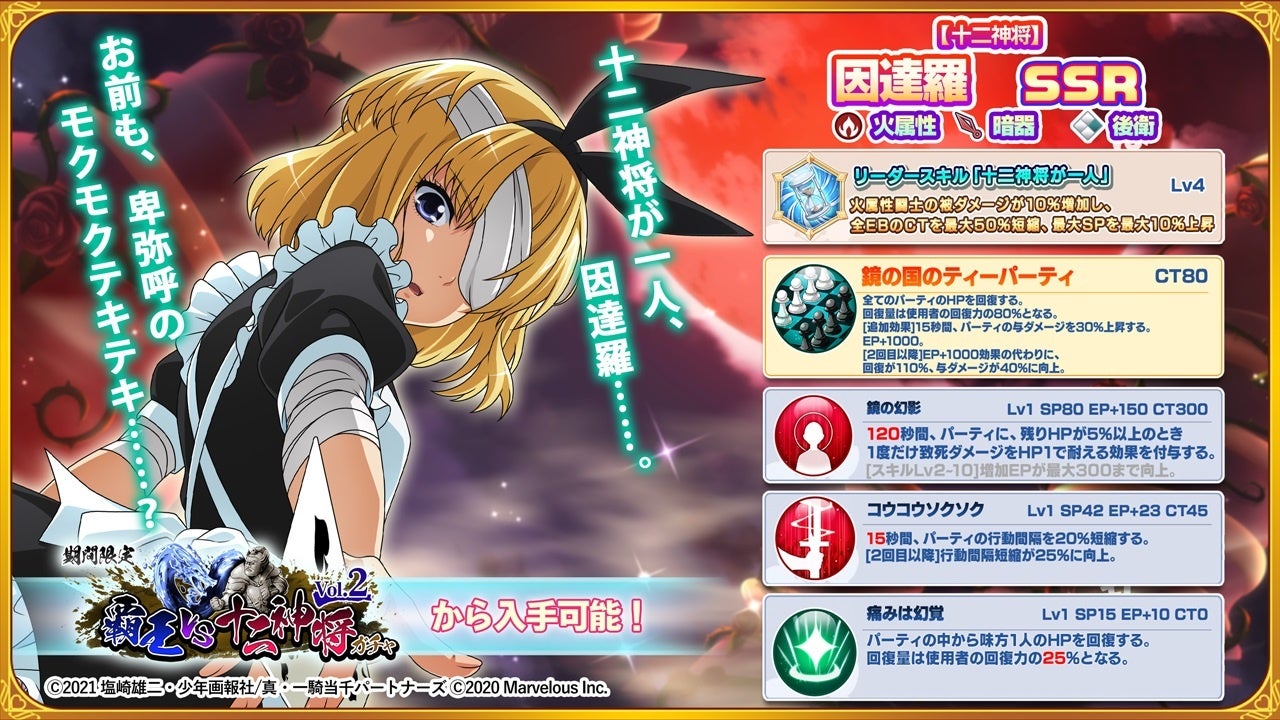本日から始まる「覇王VS十二神将ガチャVol.2」では、新たに「【十二神将】因達羅」が初登場!