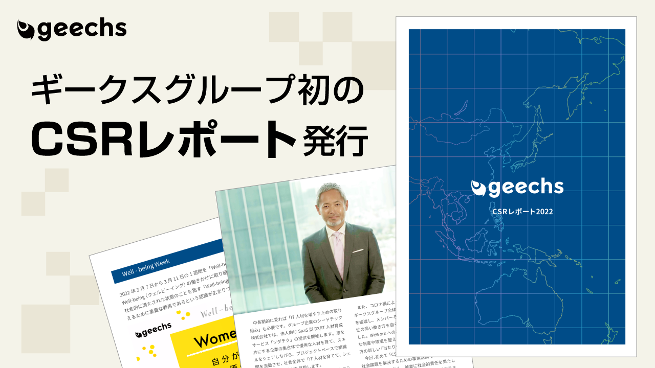 ギークス株式会社(本社:東京都渋谷区、代表取締役CEO:曽根原 稔人、以下ギークス)は、5月19日(木)に「CSRレポート2022」を発行することをお知らせします。