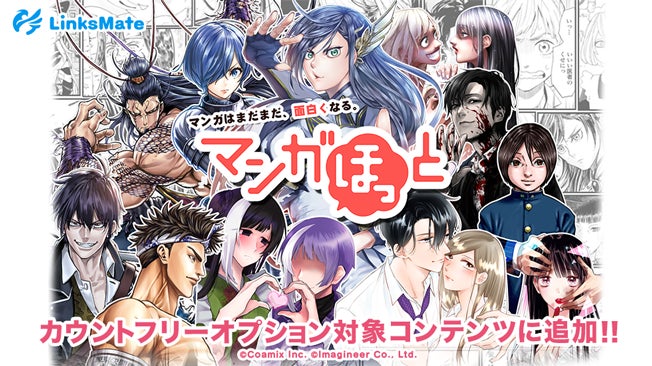 株式会社LogicLinks(以下LogicLinks、本社:東京都渋谷区、代表取締役社長:春田 康一)は、MVNOサービス「LinksMate」において、2022年5月20日(金)よりカウントフリーオプション対象コンテンツとして株式会社コアミックス(以下コアミックス、本社:東京都武蔵野市吉祥寺南町 1-9-9 吉祥寺じぞうビル、代表取締役社長:堀江 信彦)とイマジニア株式会社(以下イマジニア、本社:東京都新宿区西新宿 2-7-1 小田急第一生命ビル 15F、代表取締役社長兼CEO:澄岡 和憲)が提供する『マンガほっと』を新たに追加することをお知らせいたします。