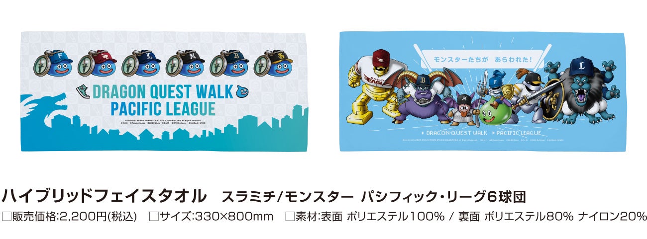 スポーツ関連グッズやイベント・アーティストグッズの制作を手掛ける株式会社スペースエイジ(本社:広島県広島市、代表取締役:吉岡憲治)は、『ドラゴンクエストウォーク×パ・リーグ6 球団』コラボグッズ(一部商品)を2022年5月16日(月)より発売いたしました。