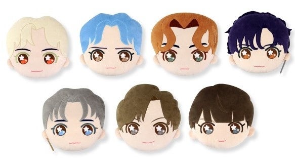 日本人3名、韓国人3名、日韓ハーフ1名による7名のメンバーで構成された『ORβIT』が描き下ろしイラストの限定プライズ・カプセルトイとして登場します。プライズでは「フェイスクッション」、「ぬいぐるみ」2アイテム14種類。カプセルトイでは「ラバーマスコット」1アイテム7種類を展開します。キラキラの目を始めとした可愛らしいフォルムが魅力的です。