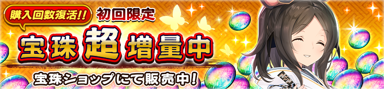 価格ごとにユーザーお1人様につき1回ずつご利用することができ、購入した有償宝珠と同数の無償宝珠を追加で入手することができる、非常にお得な内容となっております。