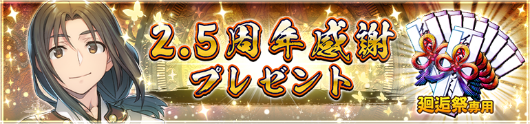 2.5周年を記念した特別なガチャです。「歓謝恩礼ログインボーナス」で獲得できる「歓謝恩礼結糸(10回)」で引くことができます。