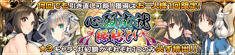 納得できるまで何度でも引き直しをすることができ、★3キャラクター・★3灯幻鏡がそれぞれ1つずつ確定となる無料ガチャの確定回数をリセットいたします。