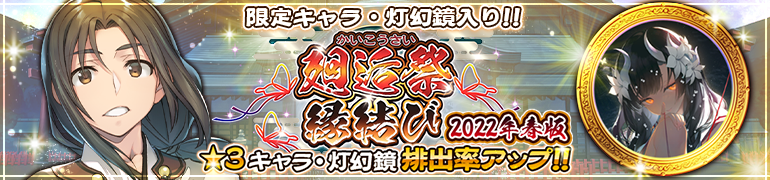また、2022年4月30日(土)までに開催された各種縁結びに登場した季節限定・期間限定・降臨祭限定のキャラクターや限定灯幻鏡もすべて再登場いたします。
