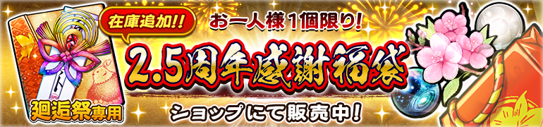 現在好評販売中の「2.5周年感謝福袋」を期間限定で追加販売いたします。