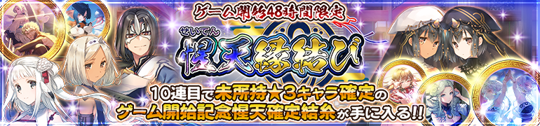 ●ガチャ「【ゲーム開始48時間限定】惺天 縁結び」&「ゲーム開始記念 惺天確定 縁結び」開催!