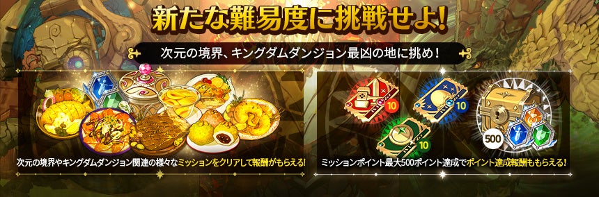 また、キングダムダンジョンには、新たに6段階を追加しております。