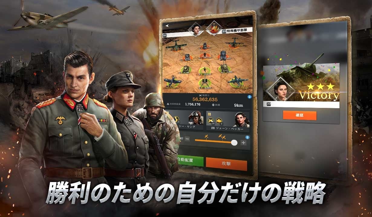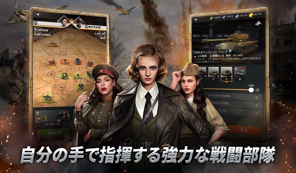 本作は実際の歴史を最大限リアルに再現したことが大きな特徴の、本格派リアルタイムモバイル歴史戦略シミュレーションゲームです。ユーザーは戦車、航空機、部隊長など多彩なユニットを駆使して戦略を練り、戦闘を有利に進めます。それ以外にも、他のユーザー達と連盟を結成し都市占領を目指すリアルタイム連盟間対戦や、世界中のユーザーと対戦ができるワールドアリーナ等々、歴史戦略シミュレーションゲームファンにお楽しみいただけるコンテンツが盛りだくさんです。