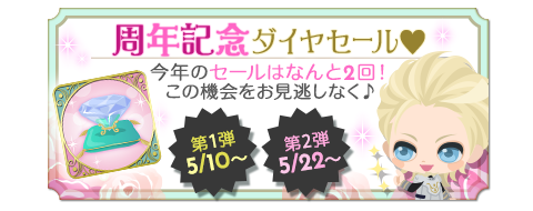 周年を記念し、ダイヤ(アプリ内アイテム)がお得に手に入るセールを実施しております。