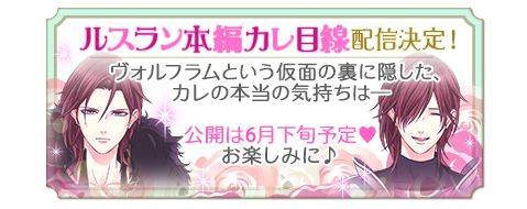 ルスランの本編カレ目線ストーリーの配信が決定いたしました。配信に合わせてストーリー早期読了キャンペーンも実施予定です。