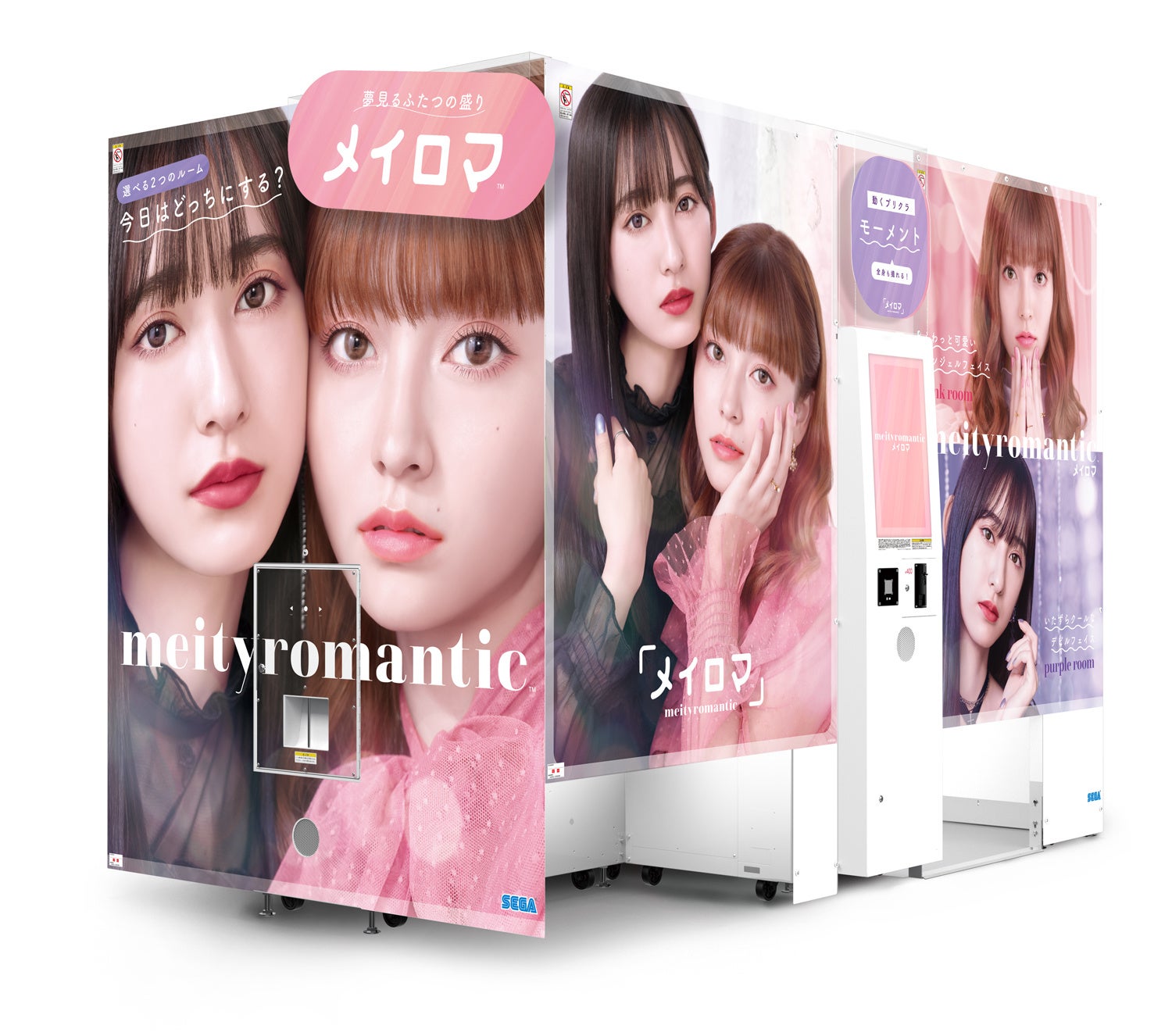 業界初のプリントシール機「プリント倶楽部®」で一世を風靡したセガによるプリクラ機です。ピンクとパープル、ふたつのルームを選択可能で、「ふわっと可愛いエンジェルフェイスなピンクルーム」、「いたずらクールなデビルフェイス」なパープルルームと、好みやその日の気分によってふたつの「盛り」を楽しめます。