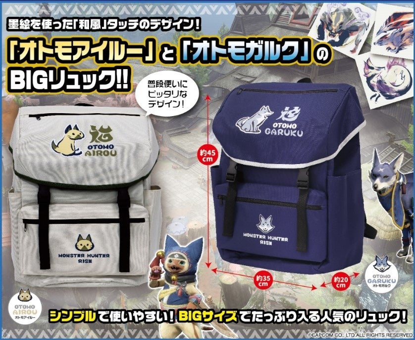 「オトモアイルー」と「オトモガルク」それぞれをイメージしたカラーリングで、普段使いにピッタリなデザインです。