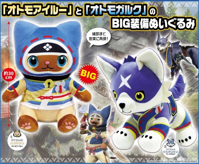オトモアイルーとオトモガルクが、約30cmのBIGぬいぐるみになって登場!
