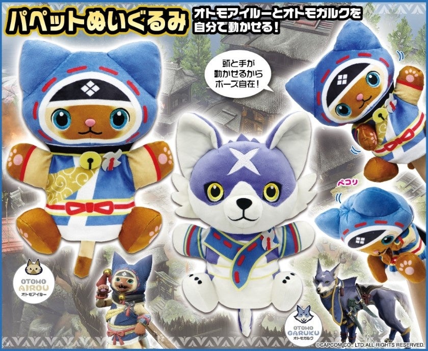 オトモアイルーとオトモガルクが、自分で動かせるパペットぬいぐるみになりました!