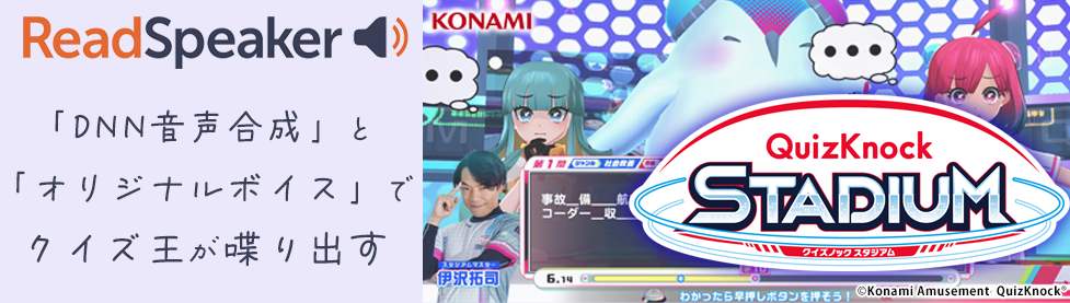 当社の『ReadSpeaker』が開発した「AI音声合成」技術、「オリジナルボイス」は、そうした先進性の高い分野の「ニーズ」を充分に満たすだけのクオリティに仕上がっていることが、今回の『QuizKnock STADIUM』の採用でも実証されました。