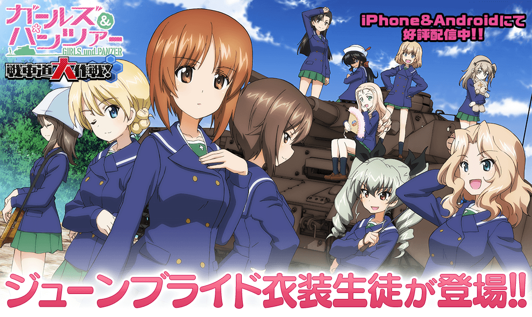株式会社モブキャストホールディングス(本社:東京都港区、代表取締役CEO 藪考樹)の子会社である株式会社モブキャストゲームス(本社:東京都港区、代表取締役CCO:細野博孝)が参画する戦車道大作戦実行委員会(株式会社博報堂DYミュージック&ピクチャーズ、株式会社モブキャストゲームス)は、iOS/Android向けゲーム『ガールズ&パンツァー 戦車道大作戦!』において、ジューンブライド衣装生徒登場についてお知らせいたします。
