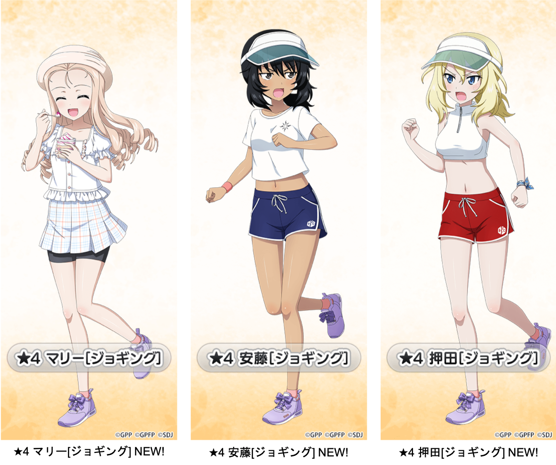 6月1日(水)13時から開始する6月日替わりイベントでは、ジョギング衣装のマリー、安藤、押田が新生徒として登場いたします。ぜひご確認ください。