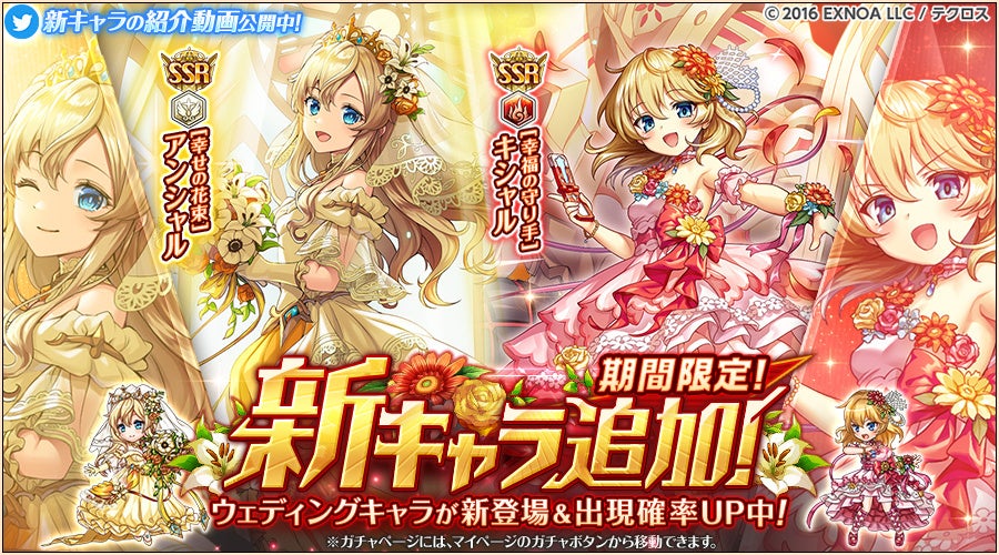 合同会社EXNOA(本社:東京都港区、CEO:村中 悠介、URL:https://games.dmm.com/)が運営するDMM GAMESにおいて『神姫PROJECT A』は、本日、「アンシャル」「キシャル」がウェディングキャラとして登場したことを発表した。さらに、イベント限定の神姫やSSRウェポンが手に入るウェディングレイドイベントも開催している。
