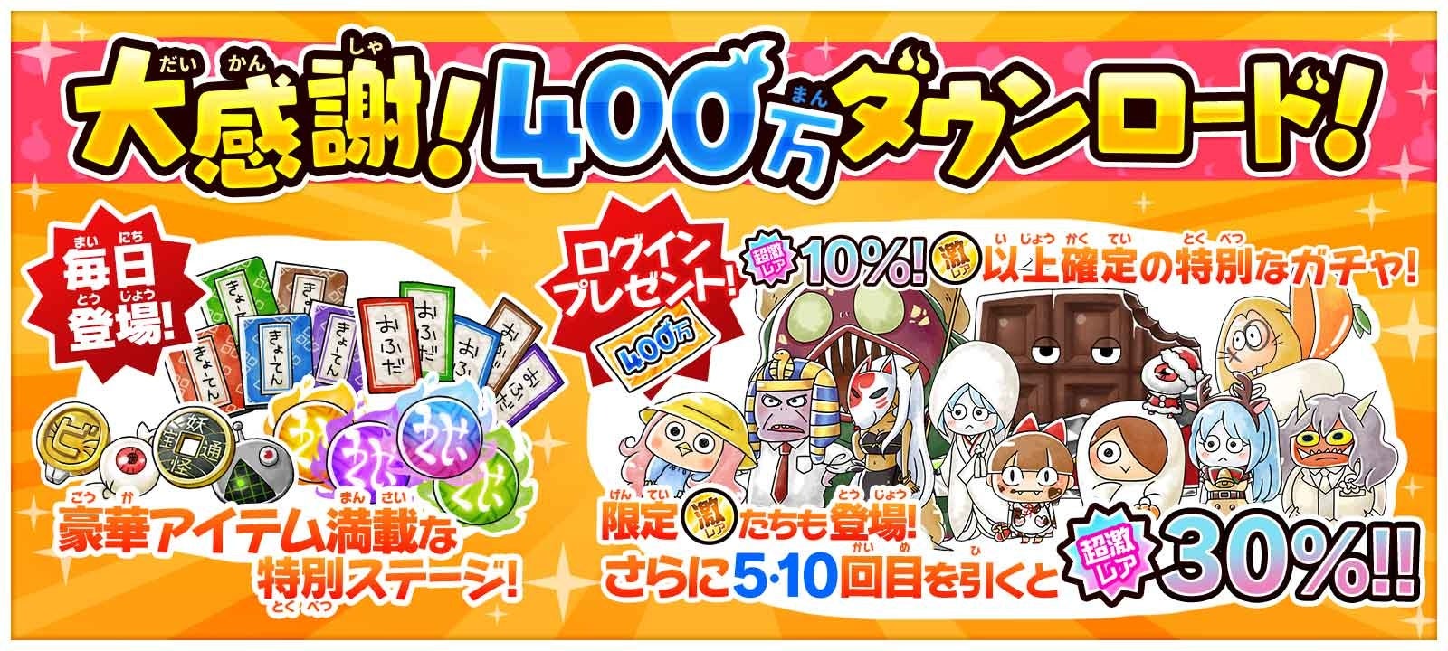 この度、『ゆるゲゲ』は400万ダウンロードを突破いたしました!