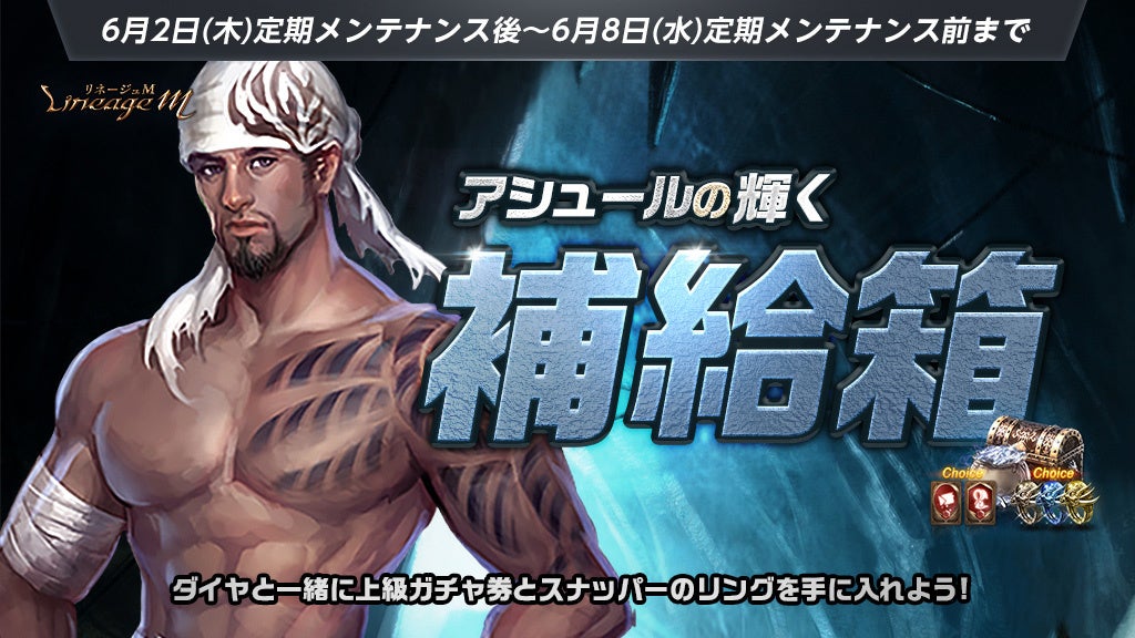 ダイヤに加え、「上級カードガチャ券選択箱」、「スナッパーのリング選択箱」が獲得できる「アシュールの輝く補給箱」が登場しました。