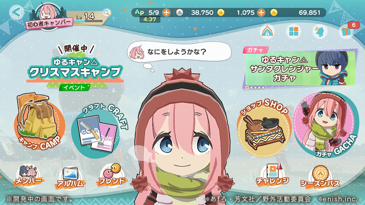 ゲームアプリ公式WEBサイト:https://yurucamp-game.enish.com/