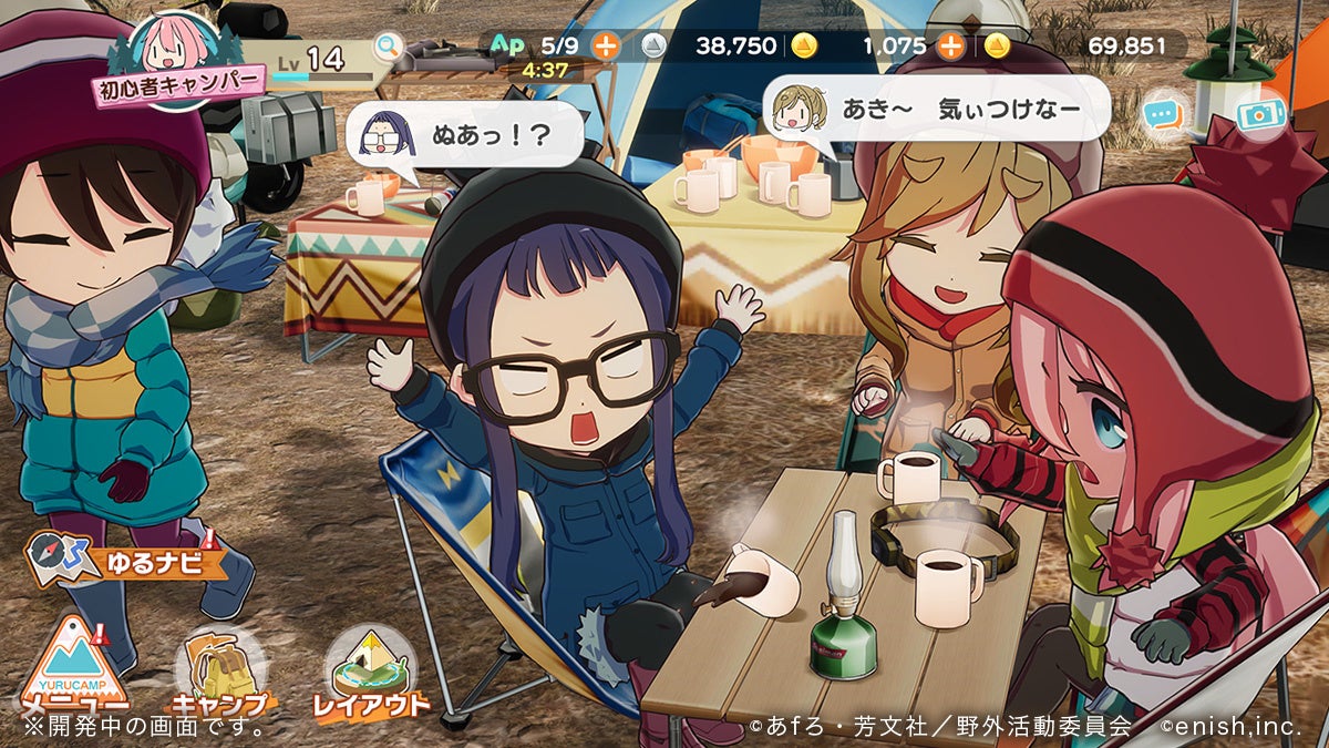今回はゲーム開発の現場より、開発中の一部の画面を、TVアニメ『ゆるキャン△』を(開発チームと同じように)こよなく愛するファンの皆さまにお届けします。