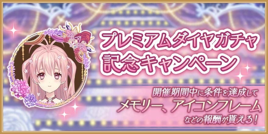 ガチャ開催期間中に、条件達成でスペシャルメモリー、アイコンフレームなど報酬が貰える記念キャンペーンも同時開催いたします!詳細はゲーム内お知らせをご覧ください♪