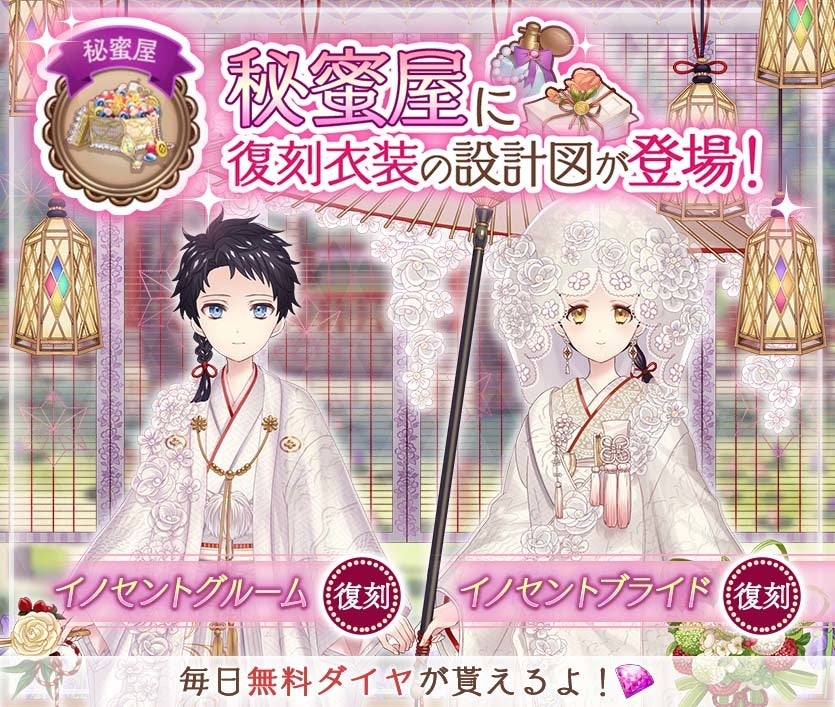 秘蜜屋にて「イノセントブライド」「イノセントグルーム」コーデの設計図が登場中です! 復刻コーデ設計図のラインナップは2週間ごとに切り替わります♪