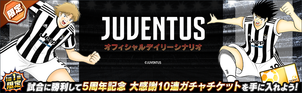KLab株式会社(本社:東京都港区、代表取締役社長:森田英克、以下「KLab」)が提供するスマートフォン向け対戦型サッカーシミュレーションゲーム『キャプテン翼 ~たたかえドリームチーム~』では、6月3日(金)よりリリース5周年記念として「JUVENTUSオフィシャル 全員プレゼント」などのキャンペーンを開催しております。
