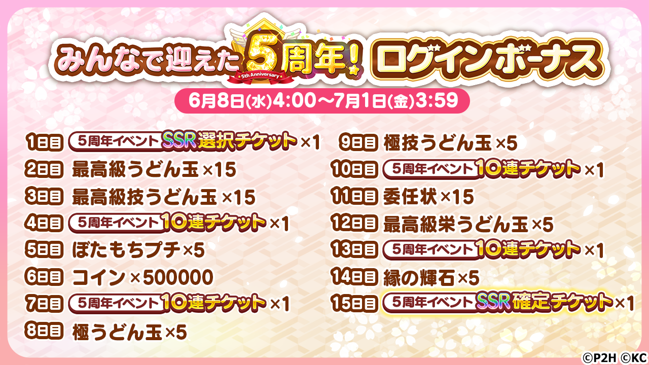 - 『みんなで迎えた5周年!ログインボーナス』 開催!!