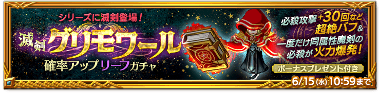 期間中、「滅剣グリモワール確率アップ リーフガチャ」を販売します。