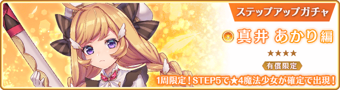 ※『有償限定 ステップアップガチャ 真井あかり編』の★4魔法少女確定までのカウントは『真井あかり ピックアップガチャ』とは異なります。