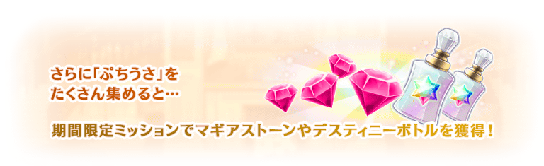 期間限定ミッションを達成することでマギアストーンや「オーバーリミッター」「デスティニーボトル」「レインボーオーブ」「マギアチップ」を獲得できます。