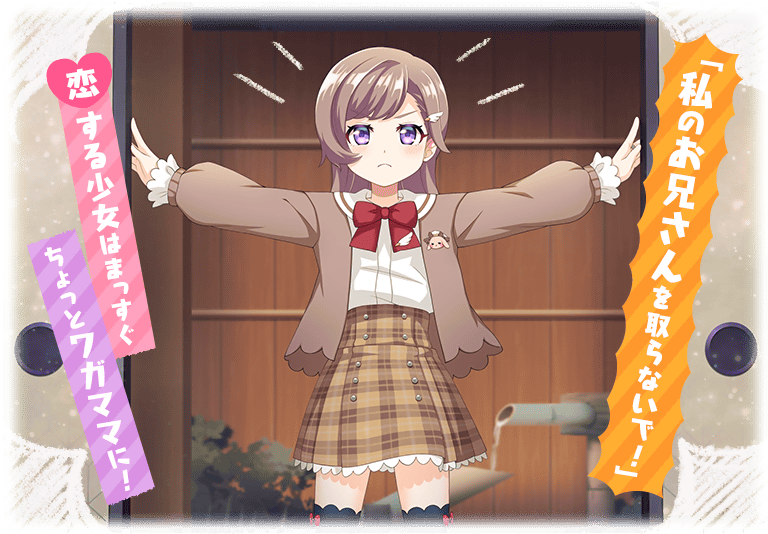 本イベントでは「真井あかり(CV.大久保瑠美)」が、大好きなお兄さんに許嫁がいると聞き「由良蛍(CV.小坂井祐莉絵)」を巻き込んで、なんとかお兄さんをとられないようにするストーリーとともに進行するストーリークエストをプレイできます。