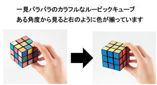 54個の各パネルは「見る角度によって2色に変化するパネル」と「色が変わらないパネル」で構成されています。「色が変わらないパネル」をヒントに、どこに配置するのが正しいのか考えながら揃えていくのがポイントです。各パネルが正しく配置できたときに、ある角度になると同じ面(9個のパネル)が同じ色に揃った状態に見えて、6面完成となります。