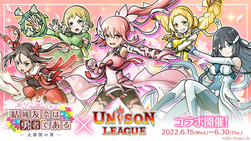 株式会社エイチームのグループ会社である株式会社エイチームエンターテインメント(本社:愛知県名古屋市、代表取締役社長:中内之公)は、スマートフォン向けに配信中のRPG『ユニゾンリーグ』にて2022年6月15日(水)より、TVアニメ『結城友奈は勇者である』とのコラボを開催します。